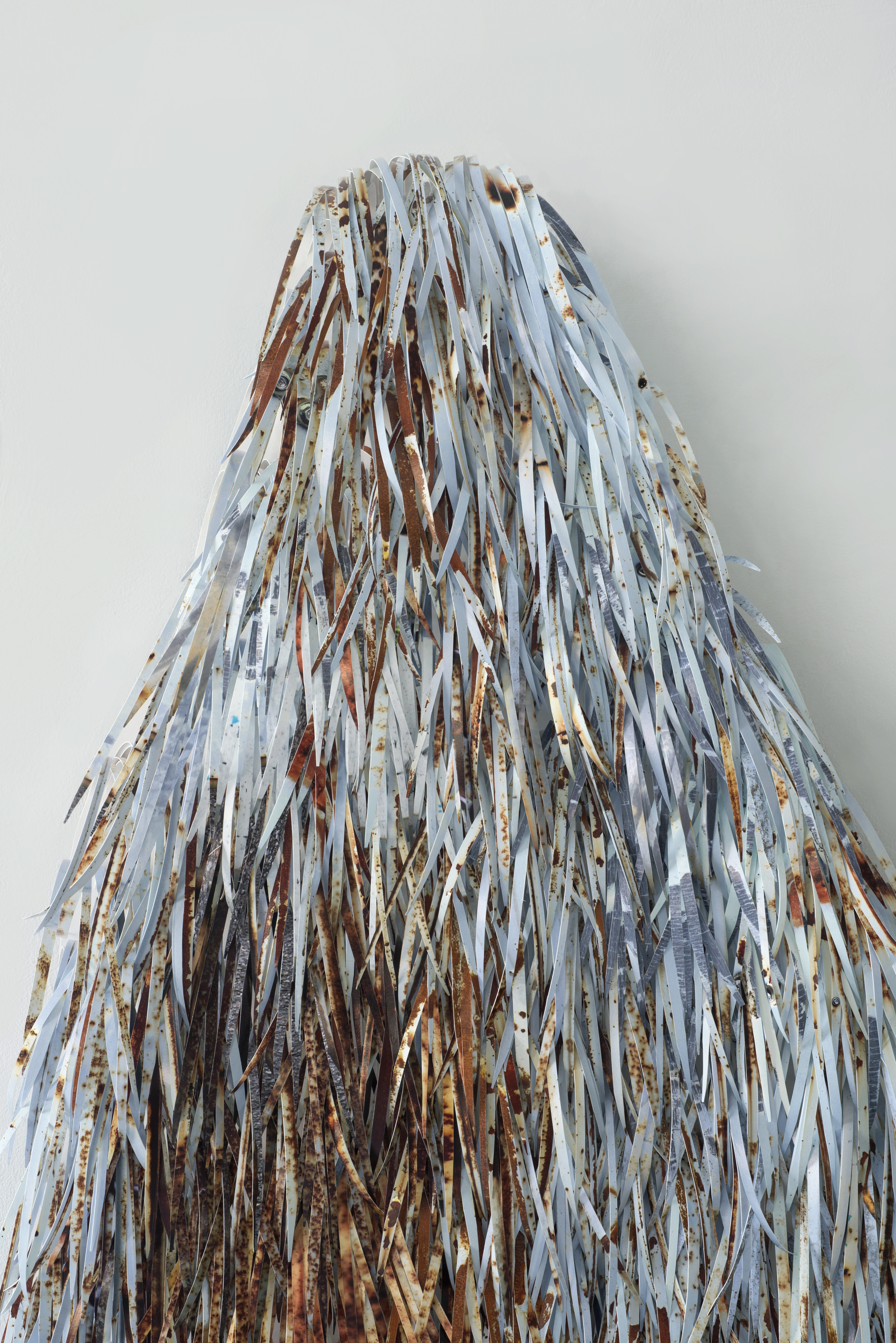 This piece is my self-portrait, meticulously crafted to match my contours and dimensions, using photographic paper featuring rusted construction fences captured on the streets of Taipei. Near the heart area, layers of curled photographic paper conceal an image of a rusty lock. I’ve named it “A little rusty girl”.