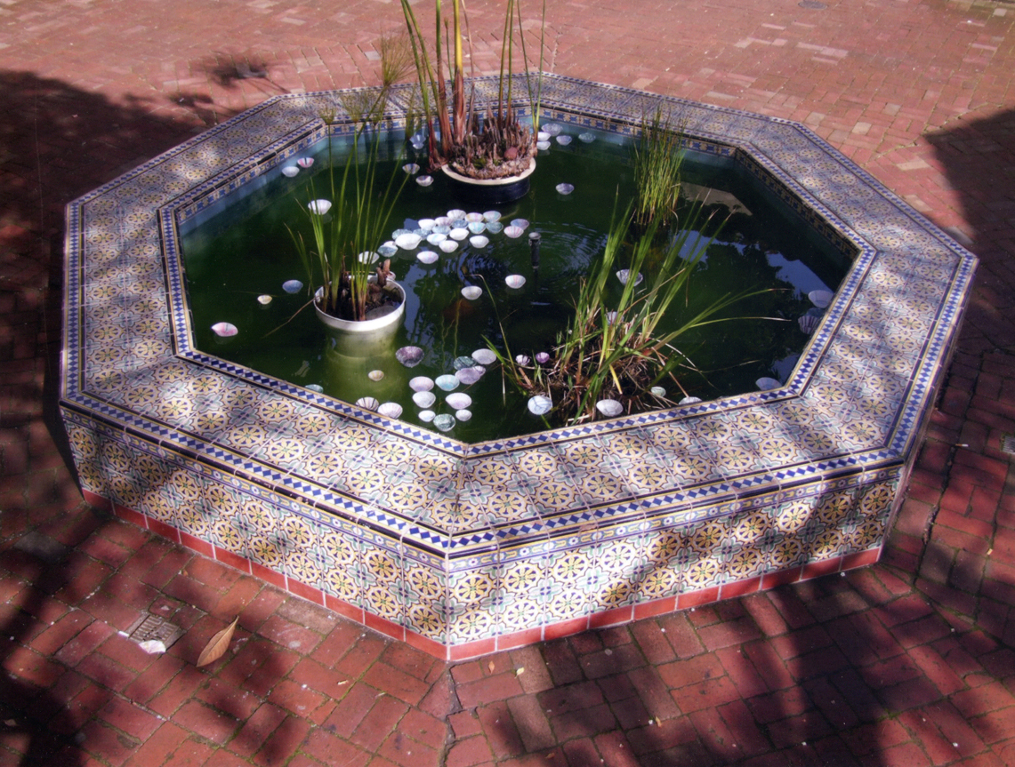 Colored pencil, Printing on the cupcake holder of the pond reflection, Fish pond, Sunshine and Wind
