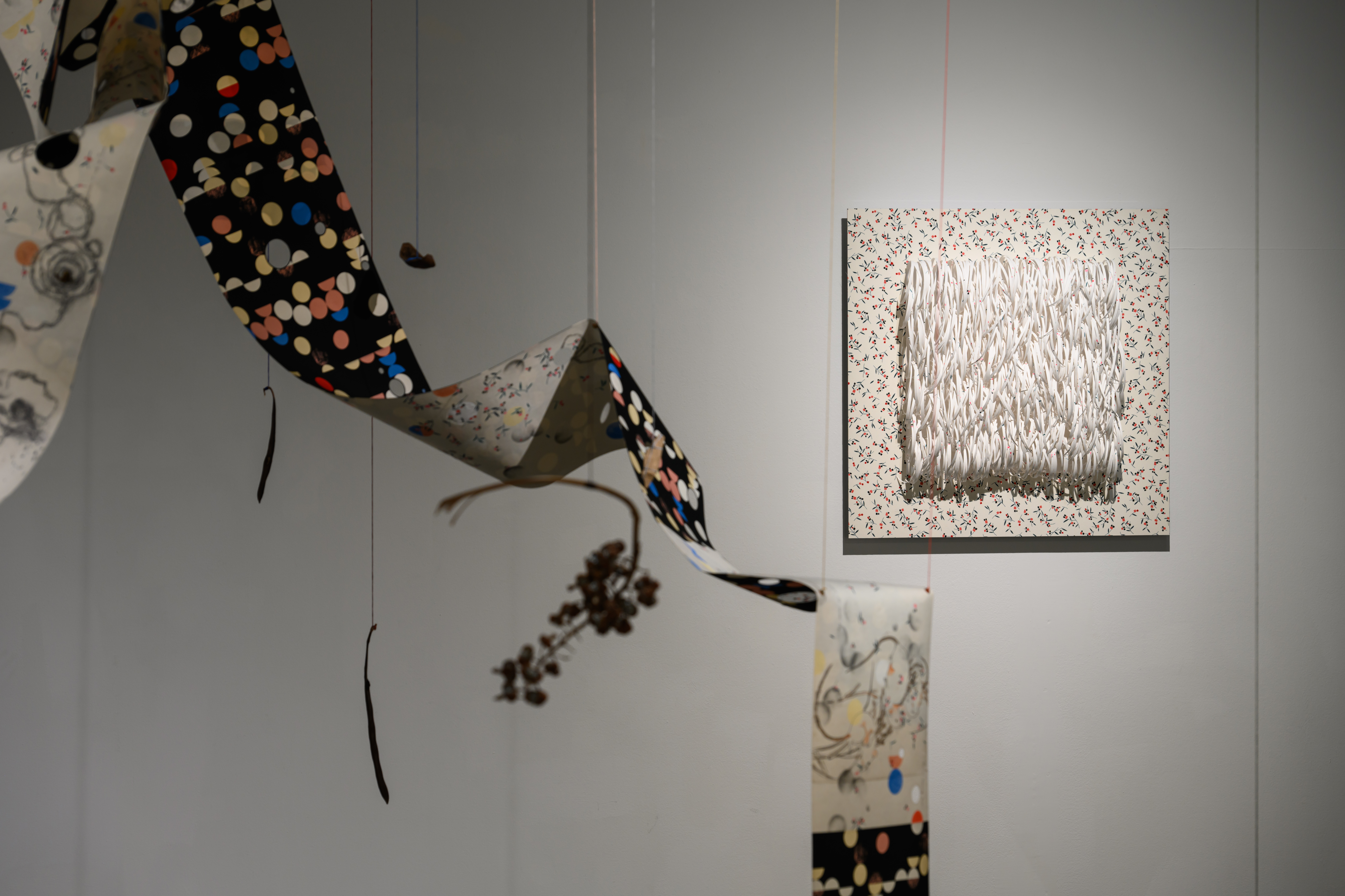 Colored pencil on French watercolor paper, Traditional mulberry paper, Fabric from Seoul on Aluminium Dibond
